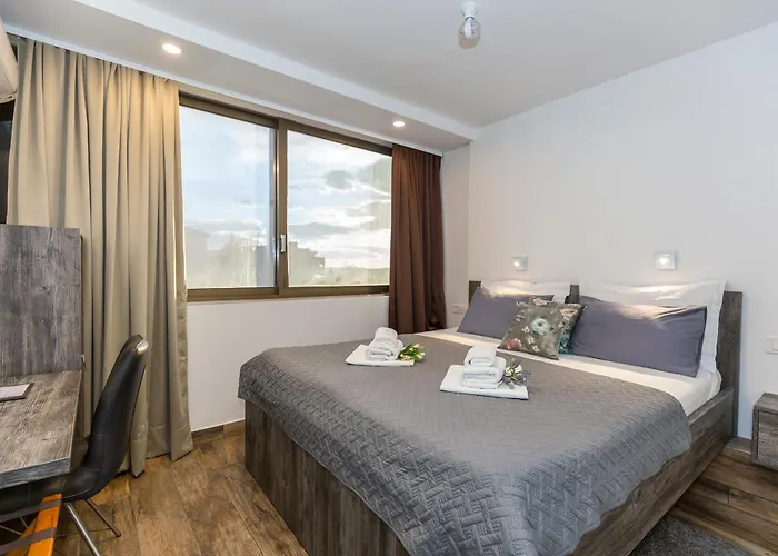 - 🚎Quali stazioni di trasporto sono le più vicine a questo hotel 4 stelle, l'Apinelo Rooms?La stazione degli autobus più vicina a questo hotel 4 stelle, l'Apinelo Rooms è Bjankinijeva a circa 5 minuti a piedi).